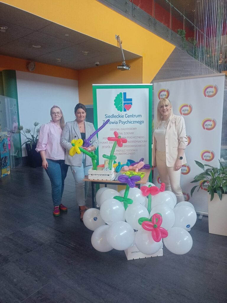 4 czerwca 2023 roku reprezentacja Siedleckiego Centrum Zdrowia Psychicznego razem z Poradnią Psychologiczną dla dzieci i młodzieży EZRA UKSW była obecna w Parku Wodnym w Siedlcach podczas weekendowych obchodów Dnia Dziecka.