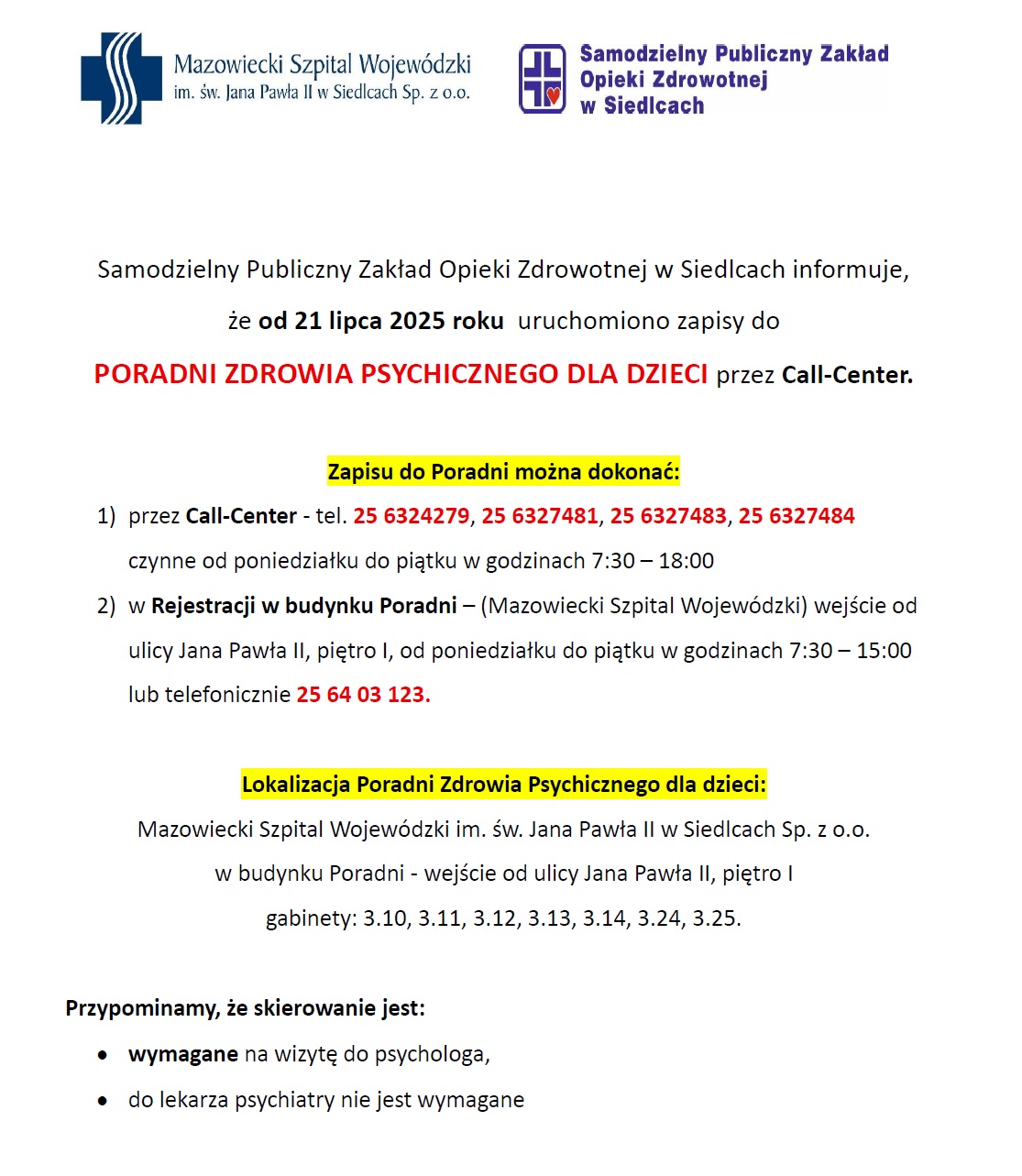 Poradnia Zdrowia Psychicznego dla Dzieci